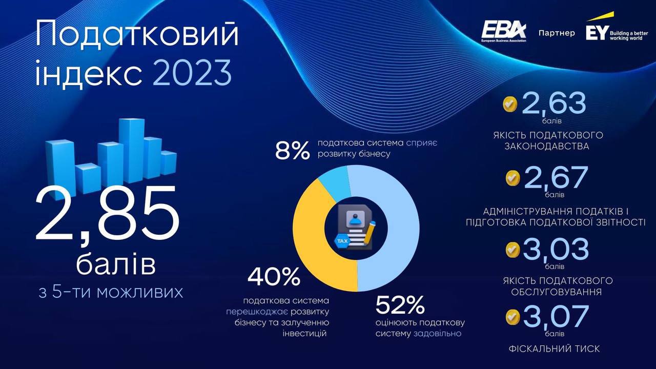 Існуючий податковий режим в Україні вважають задовільним 52% компаній, 40% впевнені, що він перешкоджав розвитку бізнесу, і лише 8% – що він сприяв розвитку їхнього бізнесу і залученню інвестицій. Про це свідчать результати щорічного дослідження "Податковий індекс" від Європейської Бізнес Асоціації (ЄБА), пише liga.net.