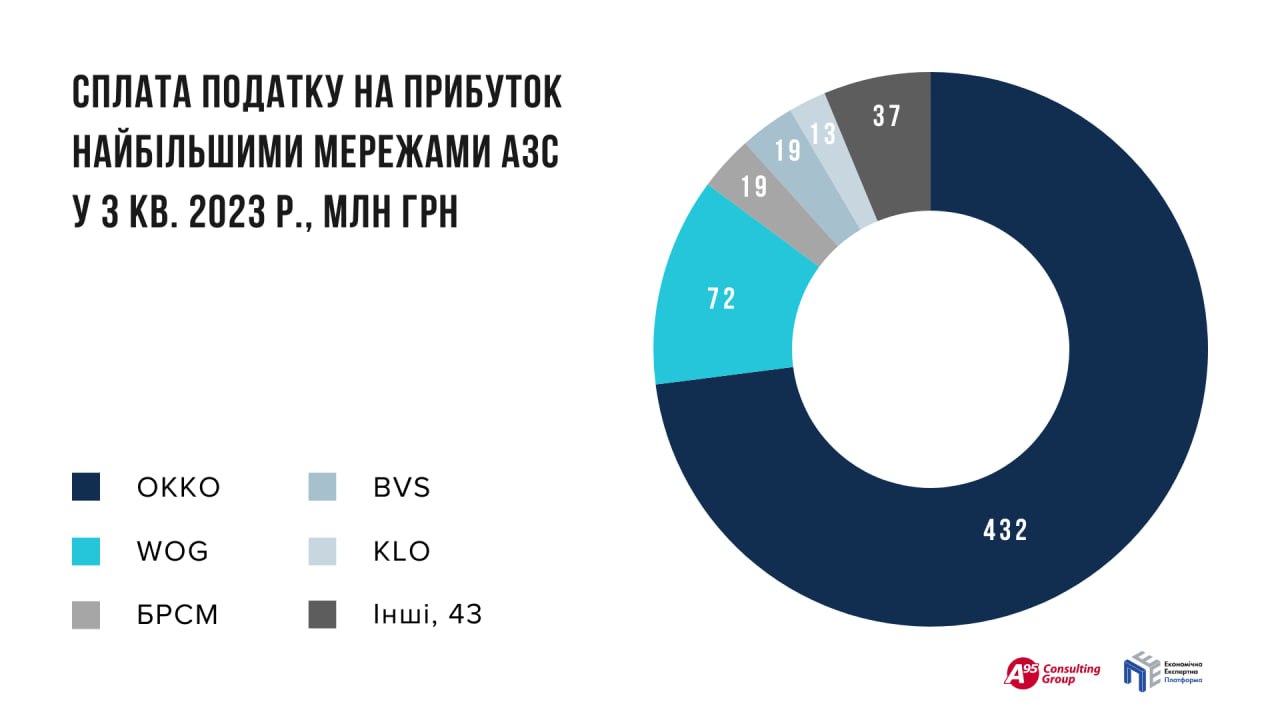 Відповідно до розрахунків групи, один об’єкт мережі ОККО приносив 1,6 млн грн чистого прибутку на місяць, тоді як станція WOG – 316 тис. грн, столичної KLO – 297 тис. грн.