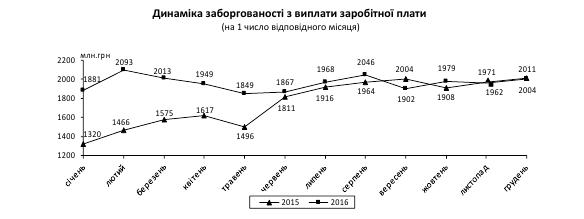 Упродовж листопада 2016 року загальна сума заборгованості з виплати заробітної плати збільшилася на 2,1%, або на 42,0 млн грн, і на 1 грудня становила 2004,0 млн грн, повідомляє Державна служба статистики.