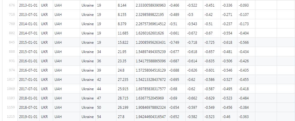 В 2019 бургер в Україні коштує 54 гривні при курсі 27.8 за долар. Уявний обмінний курс, відповідно до індексу, повинен складати – 9,68 грн за дол. Різниця між цим і фактичним обмінним курсом показує, що українська гривня недооцінена на 65,2%.