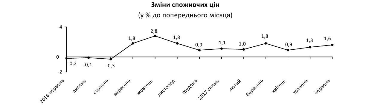 Споживчі ціни в Україні в червні 2017 року порівняно з травнем зросли на 1,6%, повідомляє Державна служба статистики. З початку року (до грудня 2016 року) ціни в Україні зросли на 7,9%.