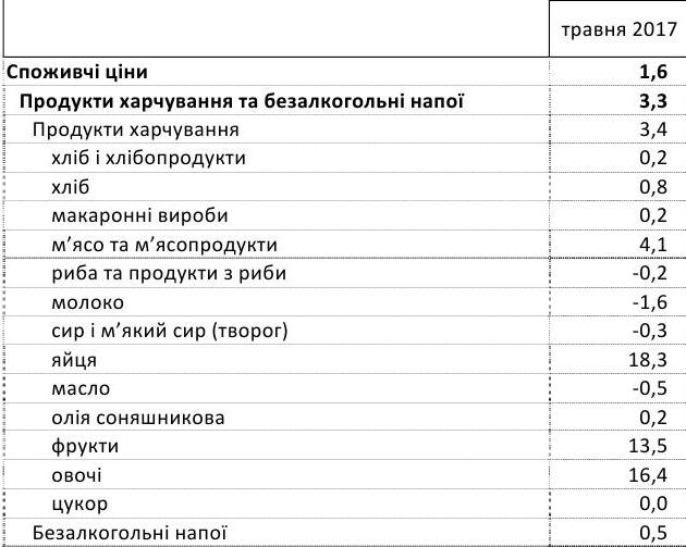У червні 2017 року продукти харчування подорожчали на 3,4% (найбільше яйця – 18,3%, овочі – на 16,4%, фрукти – на 13,5%, м'ясо та м'ясопродукти – на 4,1%). Молоко подешевшало на 1,6%.