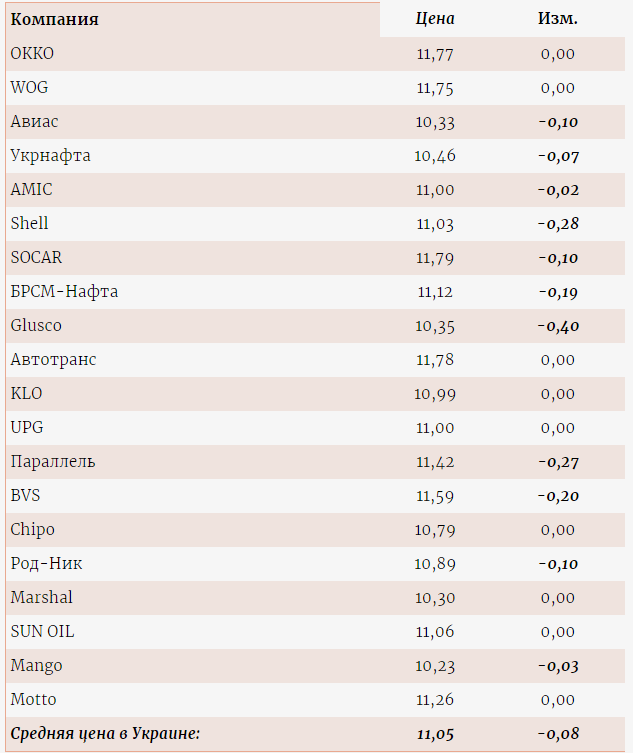 Наголошується, що станції групи "Приват", SOCAR і харківська мережа "Род-Ник" знизили ціни в межах 10 коп/л. На станціях BVS (Надія) і "БРСМ-Нафта" газ подешевшав на 20 коп/л, а мережа Glusco опустила ціни на 40 коп./л.