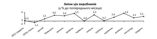 Ціни виробників промислової продукції у грудні 2016 року порівняно з листопадом зросли на 3,2%, повідомляє Державна служба статистики України.