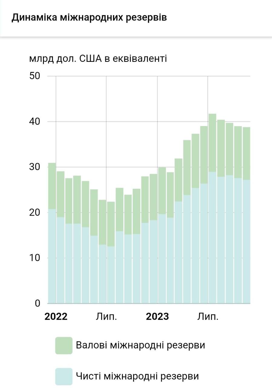 Однак він звернув увагу на зростання резервів з початку року, посилаючись на оцінки НБУ. Тобто рівень резервів зараз відповідає 5,2 місяців майбутнього імпорту при рекомендованому мінімумі 3 місяці (3,7 місяців на початку цього року).