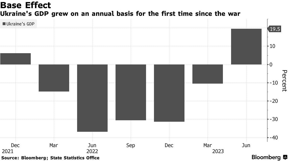 За даними Державної служби статистики, після різкого падіння протягом першого року ворожого вторгнення валовий внутрішній продукт збільшився на 19,5% у другому кварталі 2023 року в порівнянні з аналогічним періодом минулого року.