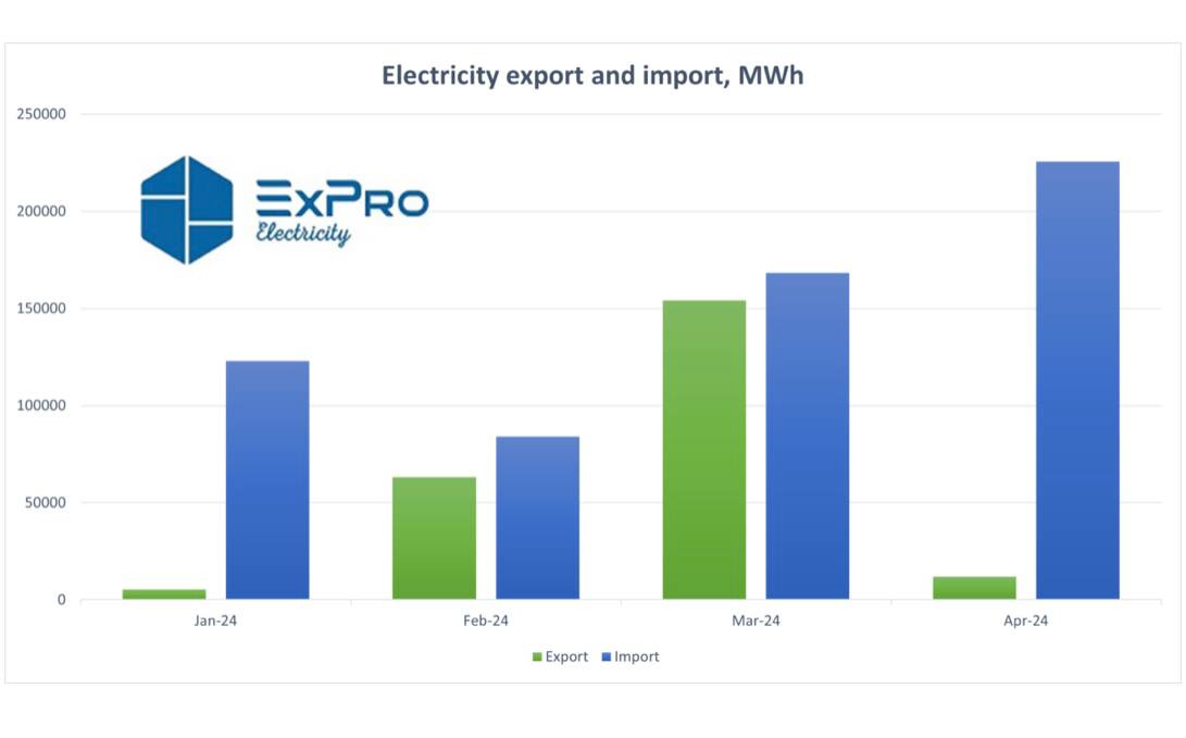 Одночасно при цьому експорт електроенергії у квітні (до березня) скоротився в 10 разів – до 12013 МВт-год.