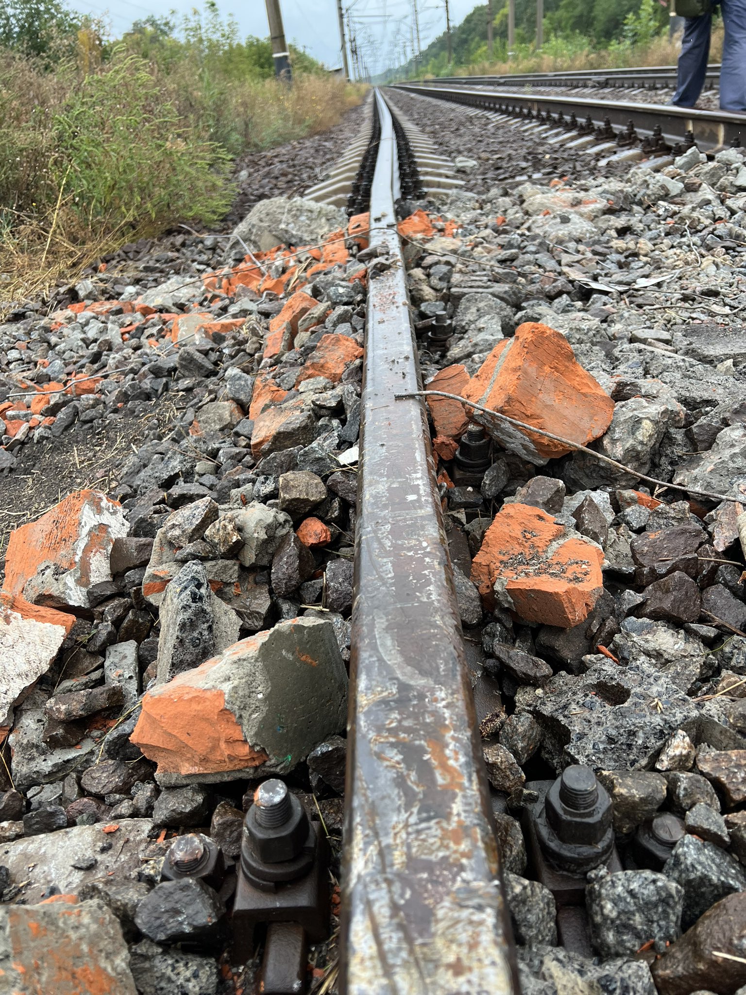 Крім того, колії усіяні слідами від вибухівки. Такі пошкодження, за словами голови УЗ, можна відремонтувати за кілька годин, але подібних місць дуже багато.