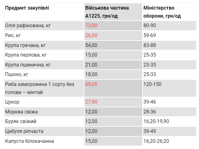 З понеділка, 24 квітня, на Prozorro військові частини почали публікувати дані про закупівельні ціни на продукти, обмундирування та автозапчастини. Зокрема інформацію оприлюднила і військова частина А1225, що є частиною забезпечення Головного управління розвідки Міноборони України. Як зазначають «Наші гроші», ГУР купує продукти подекуди вдвоє дешевше, аніж Міноборони.