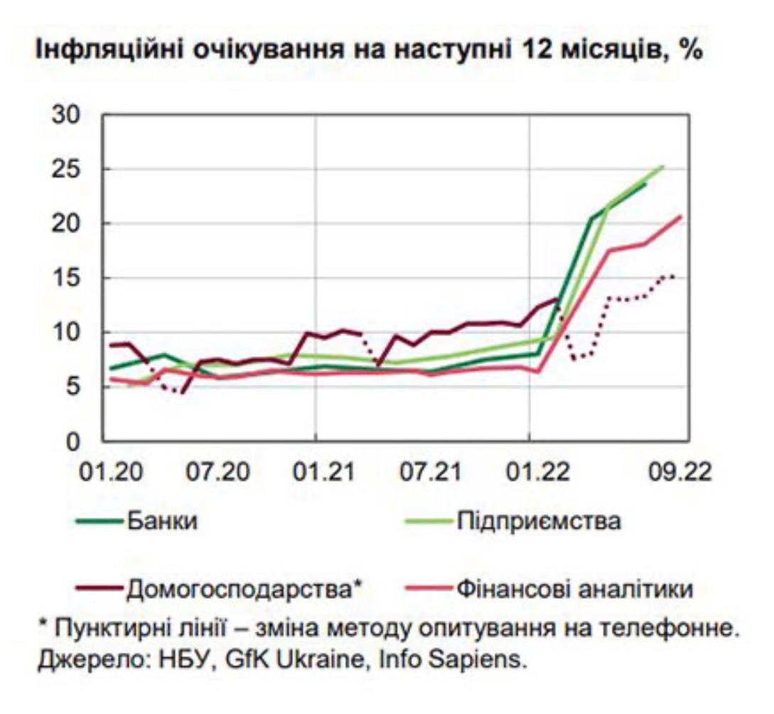 За даними НБУ, підвищення офіційного курсу долара до гривні (на 25% у липні), а також обмежене постачання нових партій товарів, значні логістичні витрати бізнесу, вичерпання запасів і погіршення девальваційних очікувань зумовили пришвидшення інфляції.