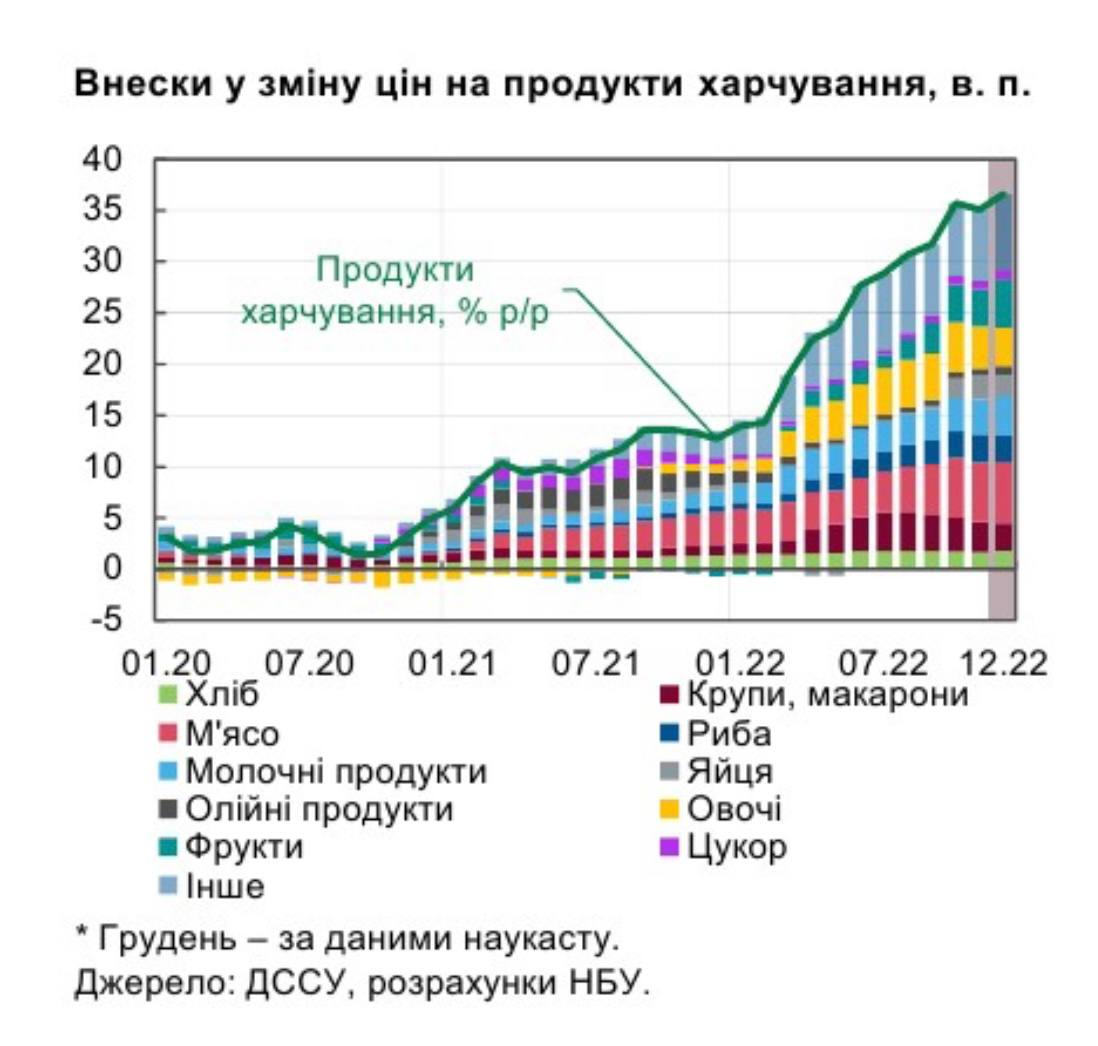 Хоча у порівнянні з жовтнем місяцем інфляція зростала повільніше через розширення пропозиції продуктів харчування, деокупацію територій, слабкий споживчий попит, зміцнення готівкового курсу гривні та стабілізацію інфляційних очікувань.