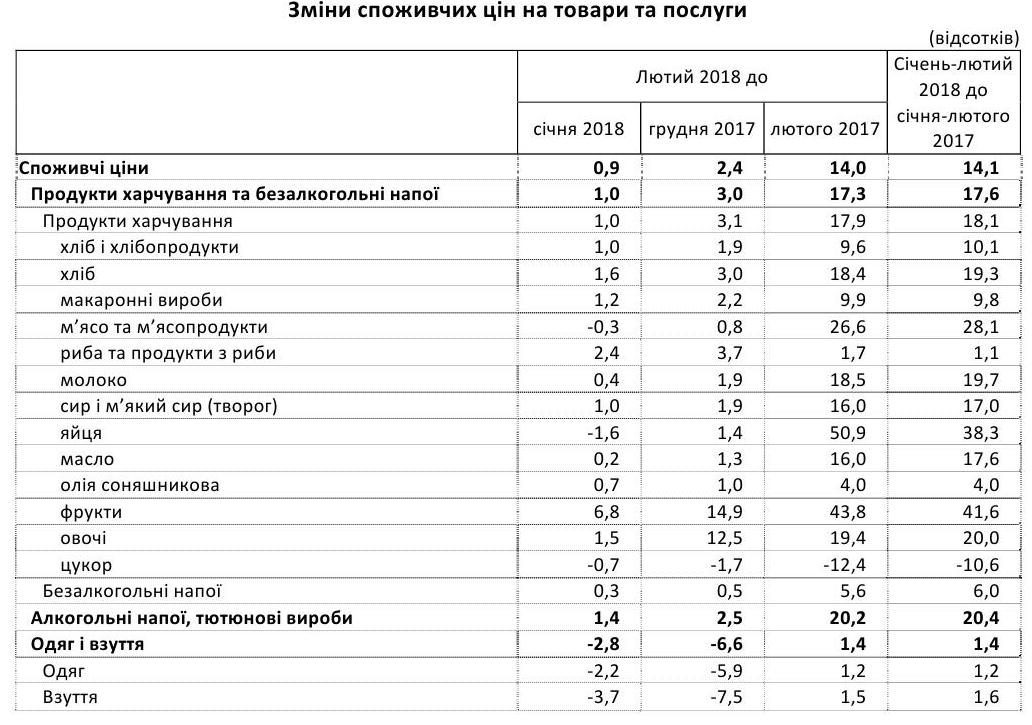 Споживчі ціни в Україні в лютому 2018 року порівняно з січнем зросли на 0,9%, повідомляє Державна служба статистики. З початку року (до грудня 2017 року) ціни в Україні зросли на 2,4%.