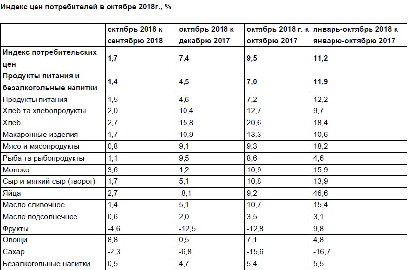 У жовтні зафіксована інфляція 9,5%, що на 0,6 відсотка більше, ніж у вересні. У вересні ціни виросли на 1,9%, а в жовтні - ще на 1,7%. Повідомляється, що ціни на продукти харчування та алкоголь в жовтні виросли на 1,4,овочі подорожчали на 8,8%.