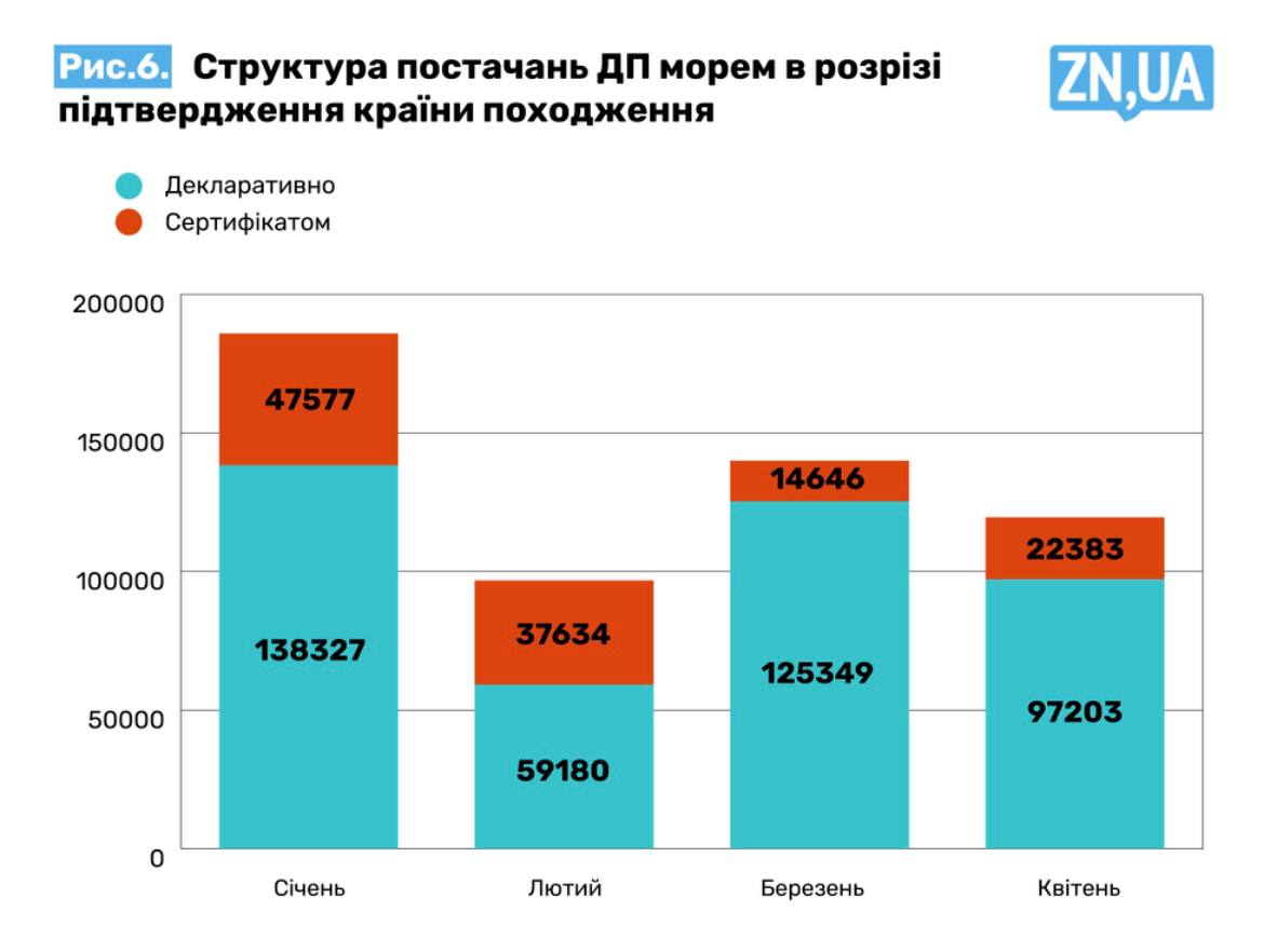 Звичайно, за документами, трейдери відправляють в Україну та країни ЄС що завгодно, але не російський ресурс. Найчастіше вказано, що ресурс із таких країн: Індія, Єгипет, Албанія, ОАЕ, Саудівська Аравія. Хоча, згідно зі статистикою, у січні—квітні 2023 року походження левової частки імпорту дизпалива підтверджувалося суто декларативно, на основі торговельних і логістичних документів. Наприклад, у березні лише 10% морських партій мали підтверджене походження.