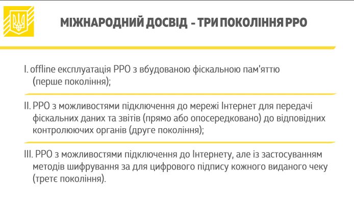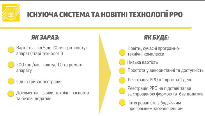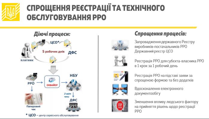 Кабінет міністрів України схвалив постанову про Спрощення обслуговування і ремонт реєстраторів розрахункових операцій (РРО) і розпочав експеримент з використання різних пристроїв в якості касових апаратів. Відповідне рішення було прийнято на засіданні уряду у середу, 13 червня. Відповідно до ухвалених документів, система передбачає онлайн-реєстрацію будь-яких пристроїв - персональних комп'ютерів, планшетів, смартфонів - без подачі в контролюючі органи документів в паперовому вигляді та безкоштовне використання замість касових апаратів.