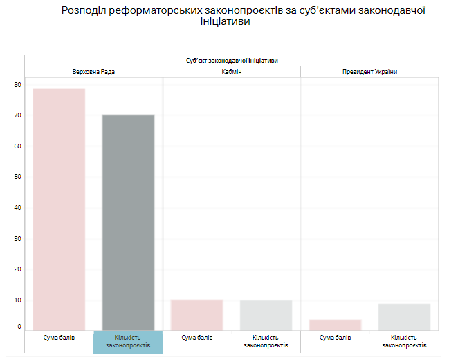 Але загалом жінки активніше ініціюють реформи, ніж чоловіки: 89% жінок були ініціаторками законів, що потрапили до Індексу реформ, тоді як частка ініціативних депутатів склала 70%. Середній бал жінок у рейтингу також виявився вищим у порівнянні з чоловіками — 4,8 проти 2,7.