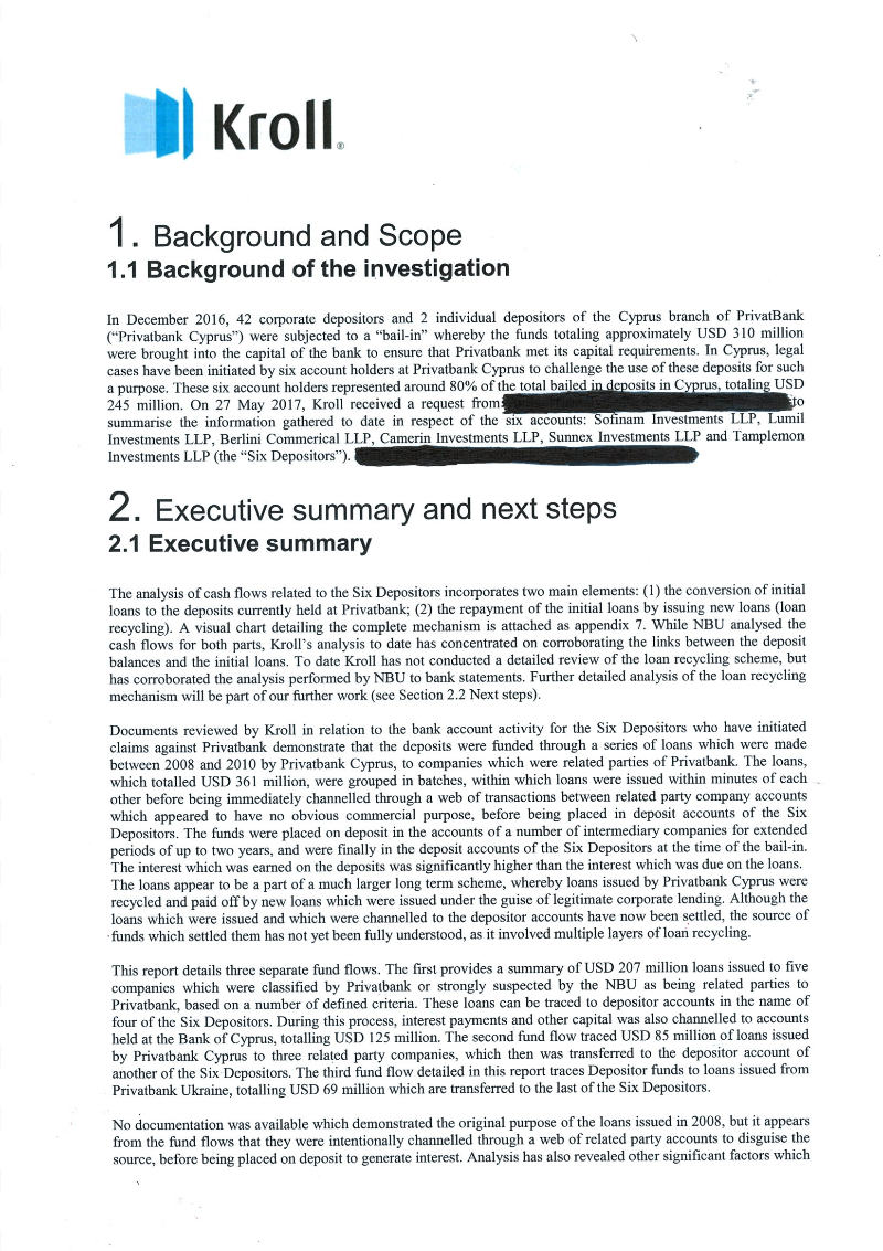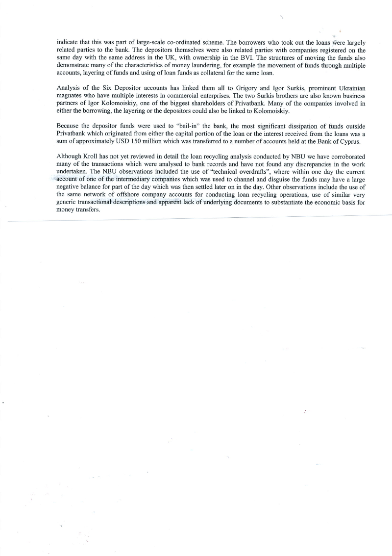 «Позики на загальну суму від 361 млн доларів були розділені на частини, кожна з яких по черзі проходила через мережу транзакцій між рахунками пов'язаних між собою компаній. Схоже, що самі транзакції не мали конкретних комерційних цілей», - зазначається у звіті.