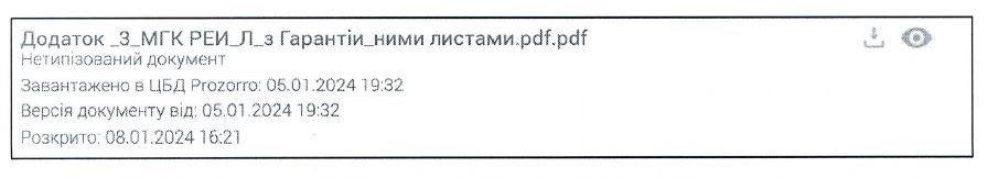 В свою чергу інформація з сайту Прозорро містить підтвердження, що файл з гарантійними термінами зберігання пального не тільки був завантажений на сайт, а й прочитаний організатором торгів.