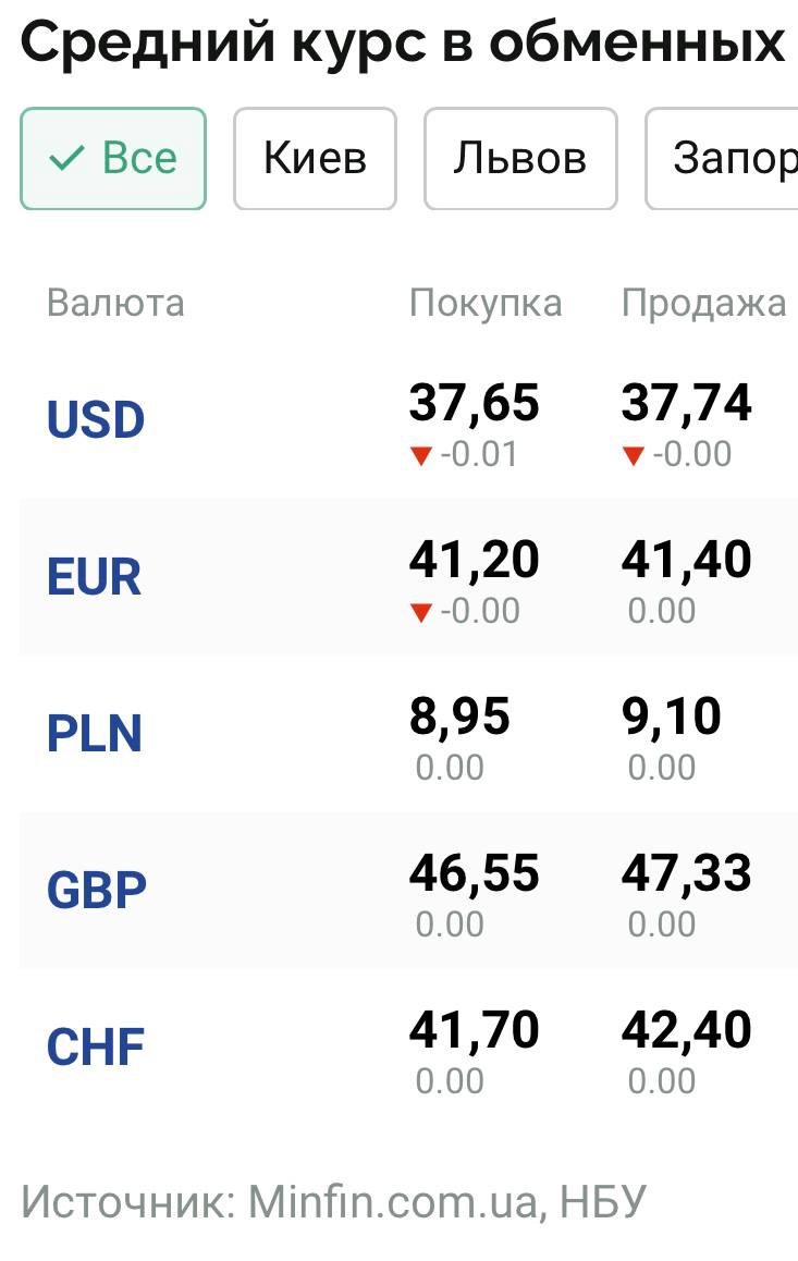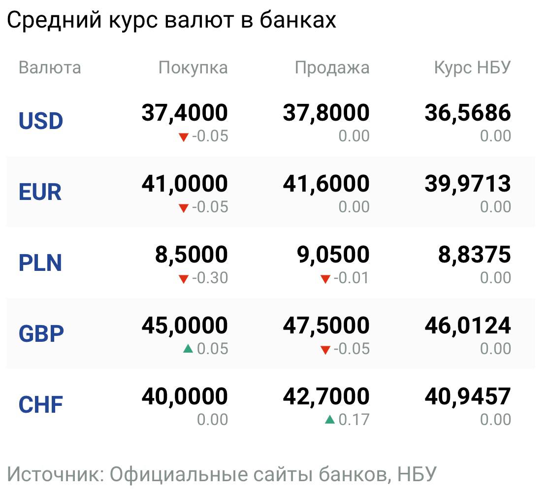 Середній курс купівлі 37,64 грн. Середній курс з продажу 37,70 грн.