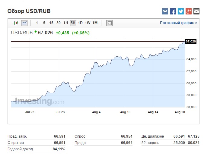 Курс долара знаходився біля позначки 70 рублів за долар наприкінці січня – початку лютого 2015 року, після чого пішов до рівнів 50 рублів за долар.