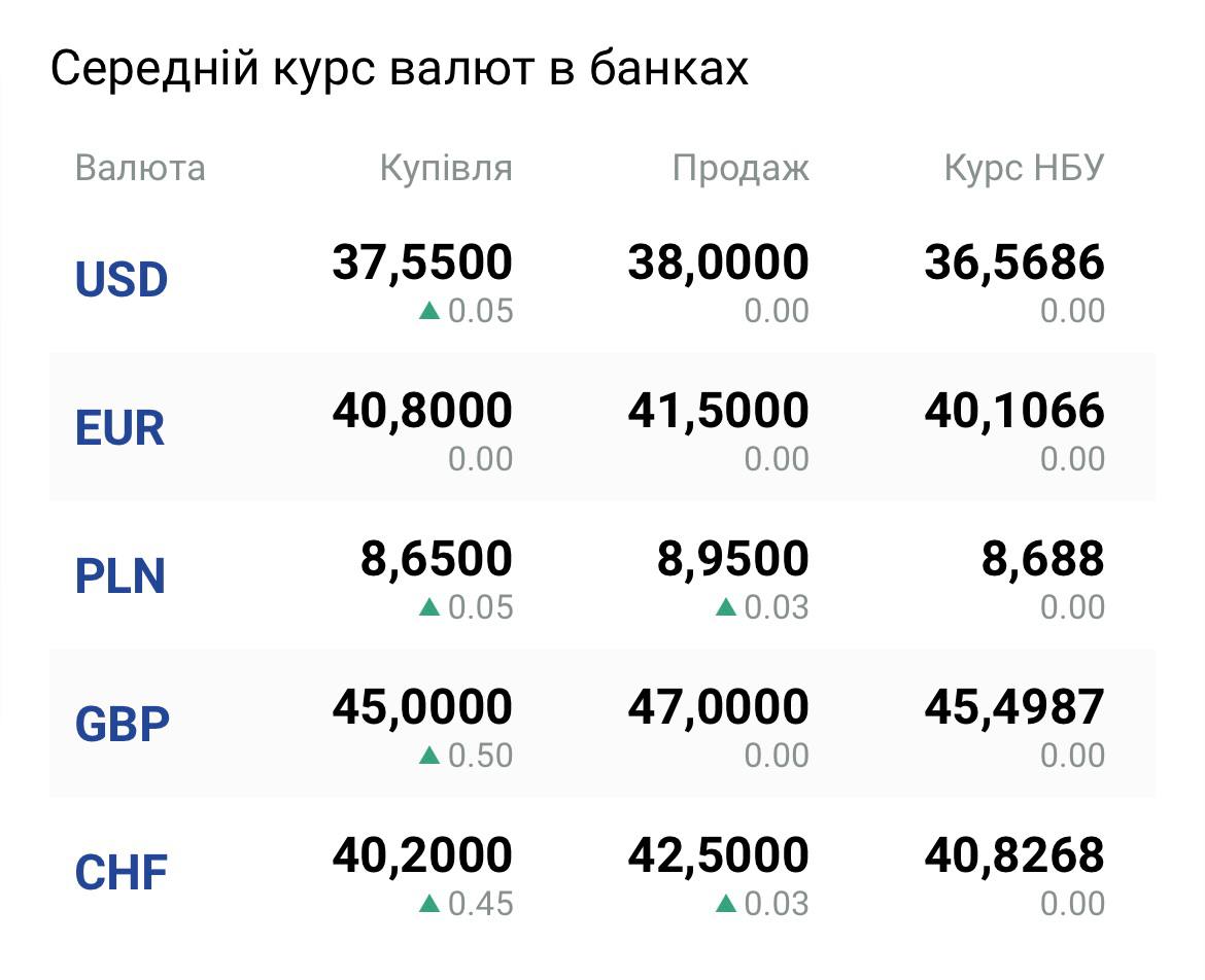 Середній курс купівлі 37,83 грн. Середній курс з продажу 37,92 грн.