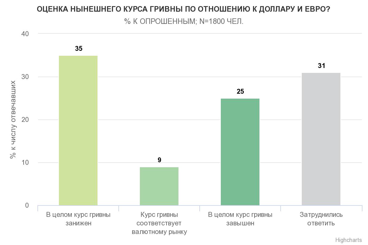 Тільки 9% респондентів заявили, що курс гривні відповідає валютному ринку, а 31% не змогли відповісти.