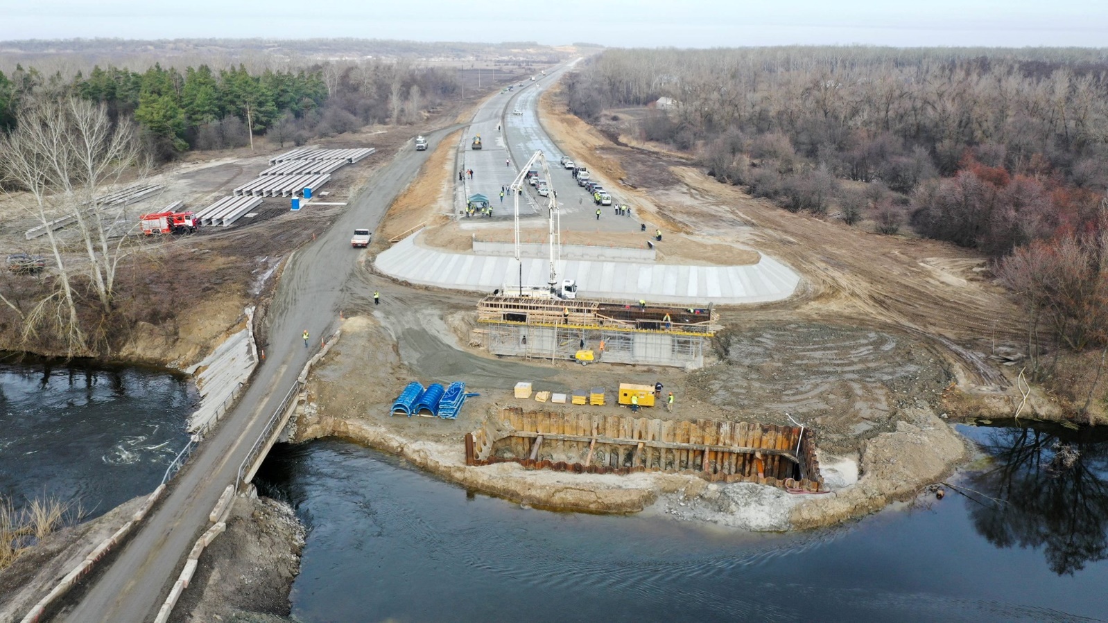На ділянці траси будується також міст через Ворсклу. Напередодні саме в цьому місці з ходом робіт ознайомився Президент України Володимир Зеленський.