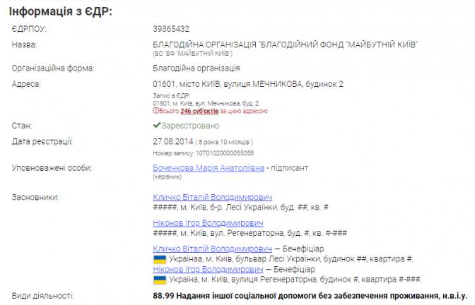 Згідно з відкритими даними YouControl та витягом з Єдиного держреєстру, засновниками фонду "Майбутній Київ" є Віталій Кличко та забудовник KAN Development і радник міського голови Ігор Ніконов.