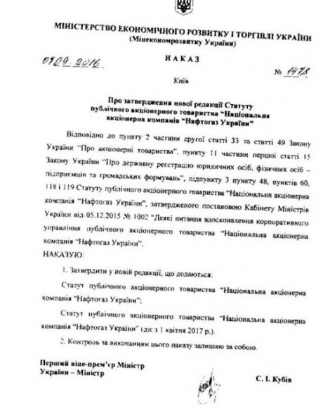 Міністерство додало кілька підпунктів в пункт 48 статуту "Нафтогазу":