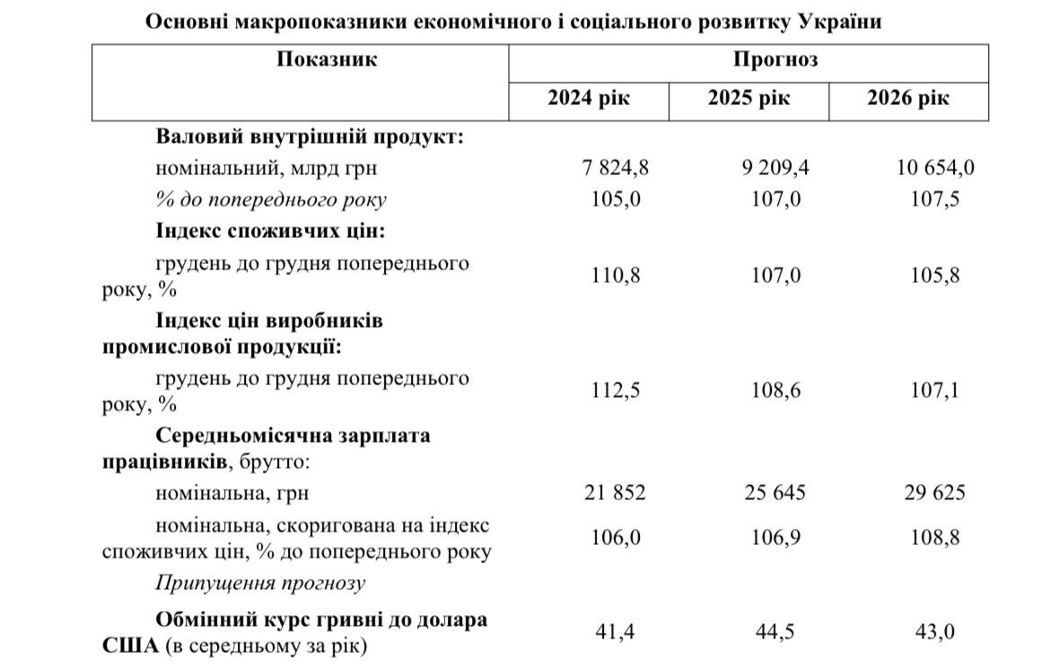 Мінфін також спрогнозував курс долара на найближчі кілька років. Так, у 2025 року передбачено зростання до 44,5 гривень за долар, а в 2026 року – до 43,0 гривень.