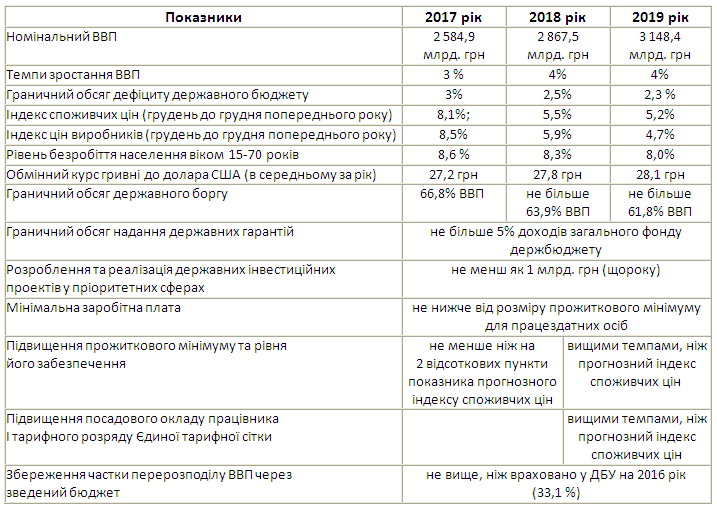 При цьому середньорічний курс гривні до долара прогнозується на рівні 27,2 грн/долар в 2017 році, 27,8 грн/долар - в 2018 році і 28,1 грн/долар в 2019 році.