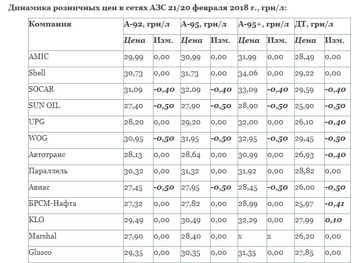 Ціни на паливо в роздрібних мережах почали дешевшати 12 лютого. Цьому сприяло зниження цін на нафту і зміцнення курсу гривні.