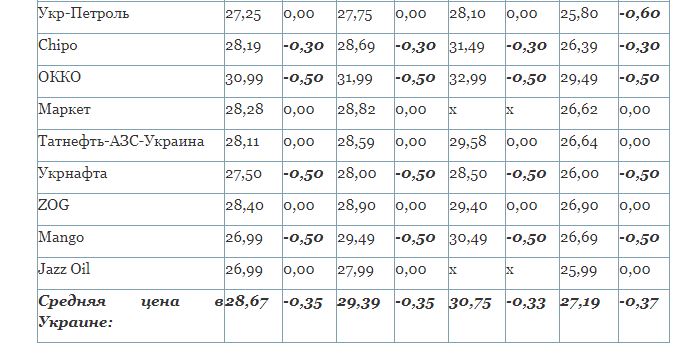Такі мережі як "Автотранс", "БРСМ-Нафта", Chipo і "Укр-Петроль" опустили ціни на 10-60 коп./л.