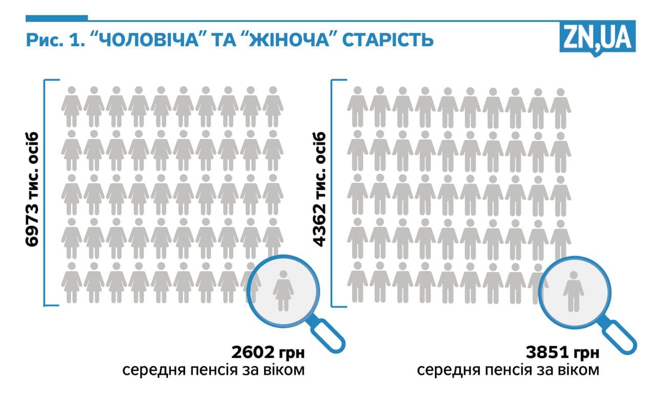 На 1 січня 2020 року в Україні було 11335 тисяч пенсіонерів, із них 4362 тисячі чоловіків (38,5%) і в 1,6 разу більше жінок — 6973 тисячі (61,5%). Про це пише Андрій Ревенко для ZN.UA.