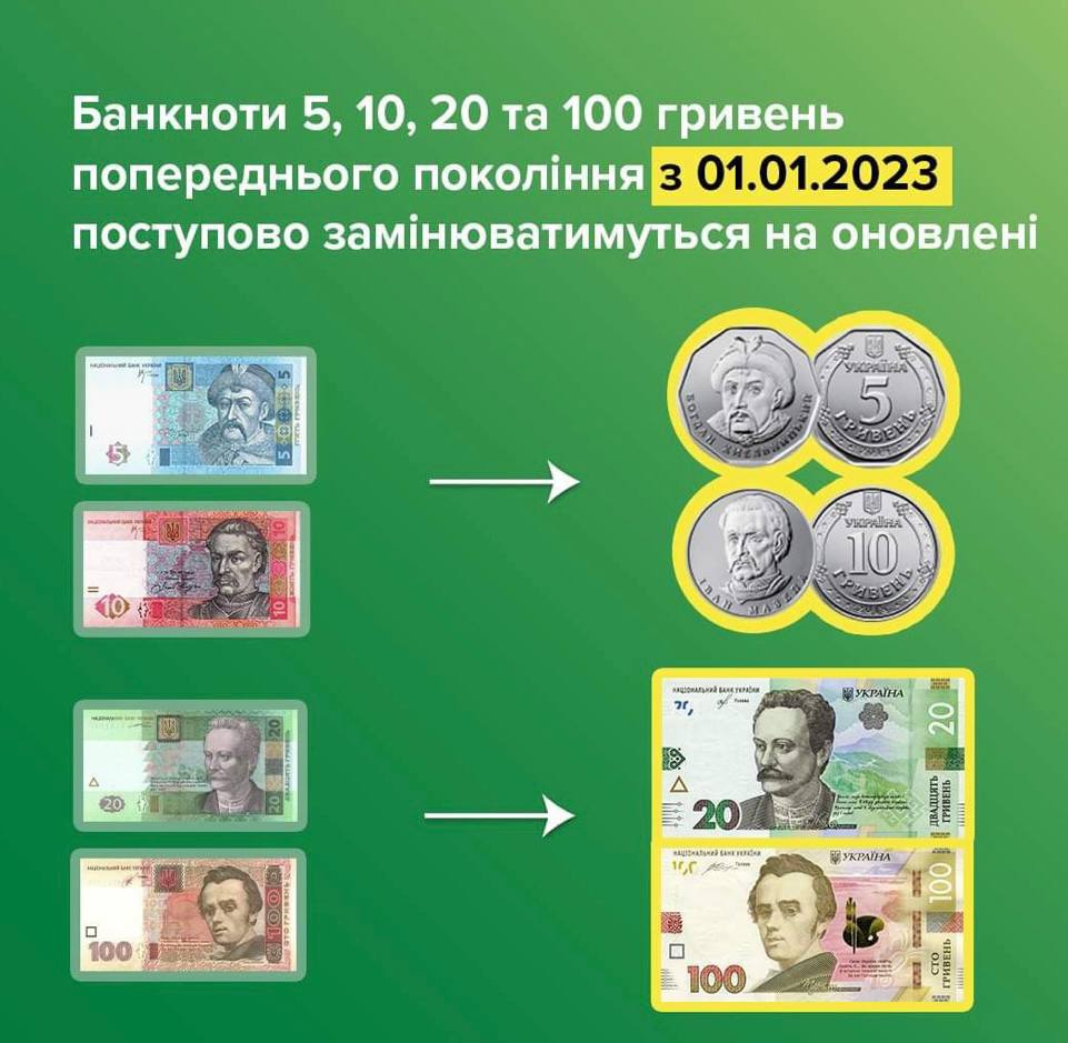 Починаючи з січня 2023 року Нацбанк розпочне поступово вилучати з обігу банкноти номіналами 5, 10, 20 та 100 гривень попереднього покоління (зразків 2003 – 2007 років). Про це повідомила пресслужба Нацбанку.