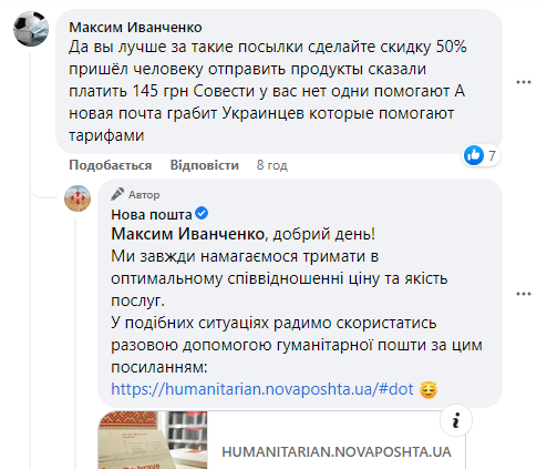 Зазначається, що ще у 2014 році Нова пошта впровадила у себе проект "Гуманітарна пошта", учасники якого можуть скористатися безкоштовною доставкою.