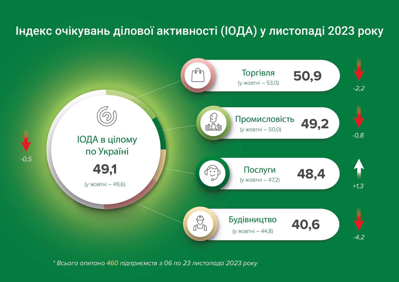 Зазначається, що підприємства торгівлі залишаються єдиним сектором економіки, який прогнозує покращення результатів своєї діяльності завдяки уповільненню інфляції, усталеному внутрішньому попиту та збільшенню пропозиції товарів: секторальний індекс у листопаді становив 50.9 порівняно з 53.0 у жовтні.