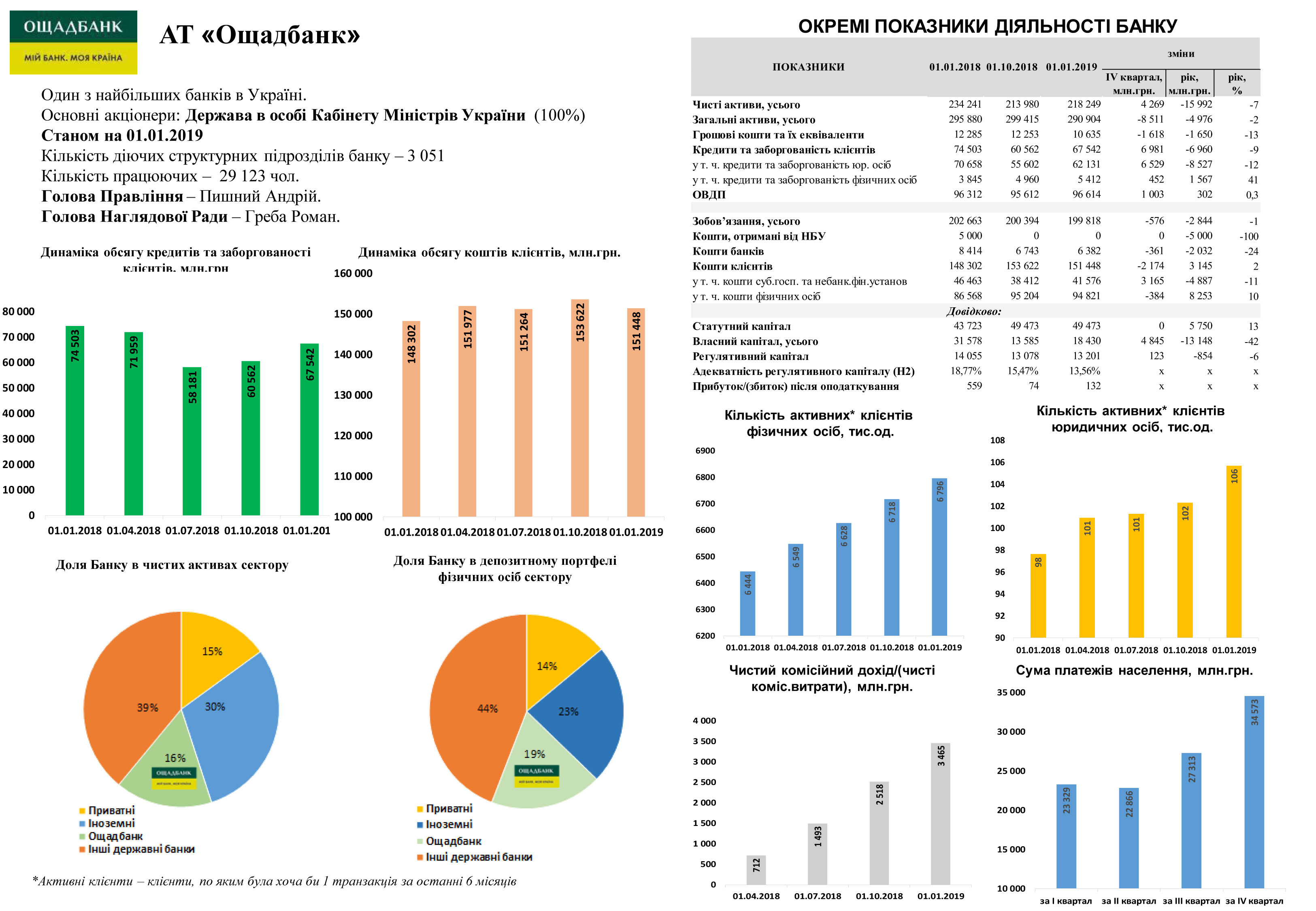 Згідно зі статистикою Ощадбанку, що оприлюднено на сайті банку, кількість активних клієнтів фізосіб за рік зросла з 6718 тис осіб до 6796 тис осіб, кількість активних клієнтів юросіб – з 102 до 106 тис одиниць.