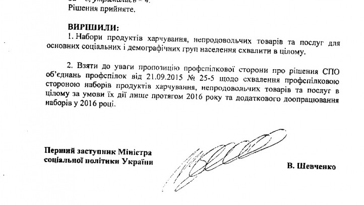 Як повідомило Міністерство соціальної політики, Комісія з науково–громадської експертизи ще в листопаді 2015 року провела ряд засідань щодо перегляду вмісту наборів непродовольчих товарів, продуктів харчування та послуг для основних соціально – демографічних груп населення ("споживчий кошик").