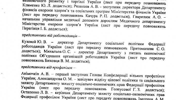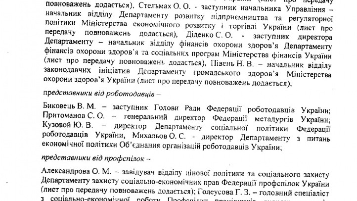 До складу комісії ввійшли представники Мінсоцполітики, Мінекономіки, Мінфіну МОЗ, а також Федерації роботодавців України, Федерації металургів України, Об'єднання організацій роботодавців в Україні, а також профспілки.