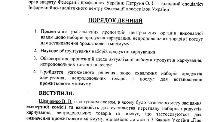 Сам проект постанови Кабміну про затвердження "споживчого кошика" хоч і не оприлюднений, але нашвидкоруч був переданий на розгляд Кабінету міністрів.