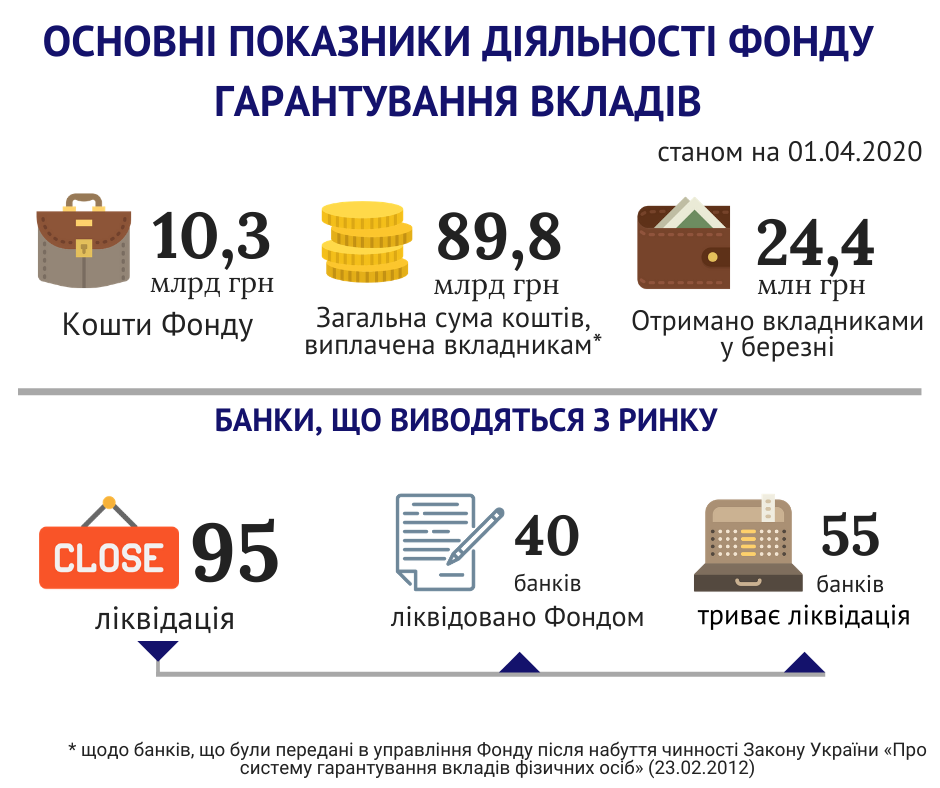 У березні, а саме з 18 березня 2020 по 31 березня 2020 року, вкладники отримали сукупно 9,3 млн грн, що становить 38% від суми виплат гарантованого відшкодування за березень (24,4 млн грн). У квітні вкладники отримали кошти на загальну суму 2,7 млн грн станом на 6 квітня 2020 року.