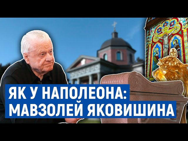 Усередині споруди – точні копії середньовічних вітражів із німецького храму, чотири позолочені фігури самого Яковишина в різні періоди життя: у 20, 40, 60 і 80 років, а також масивний саркофаг вагою 23 тонни, вартістю понад 150 тисяч доларів.