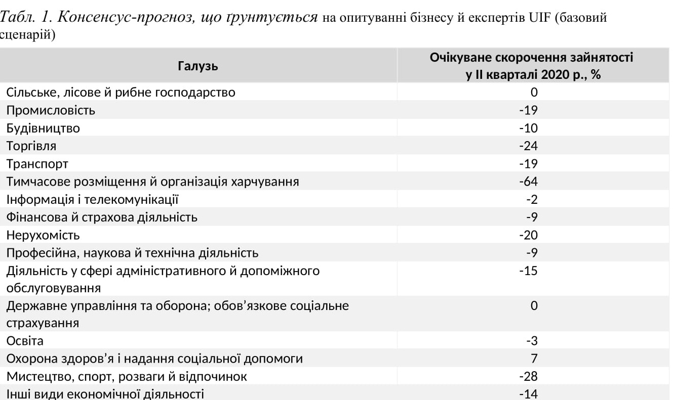 7. Очікуване скорочення зайнятості в розрізі галузей наведено в табл. 1.