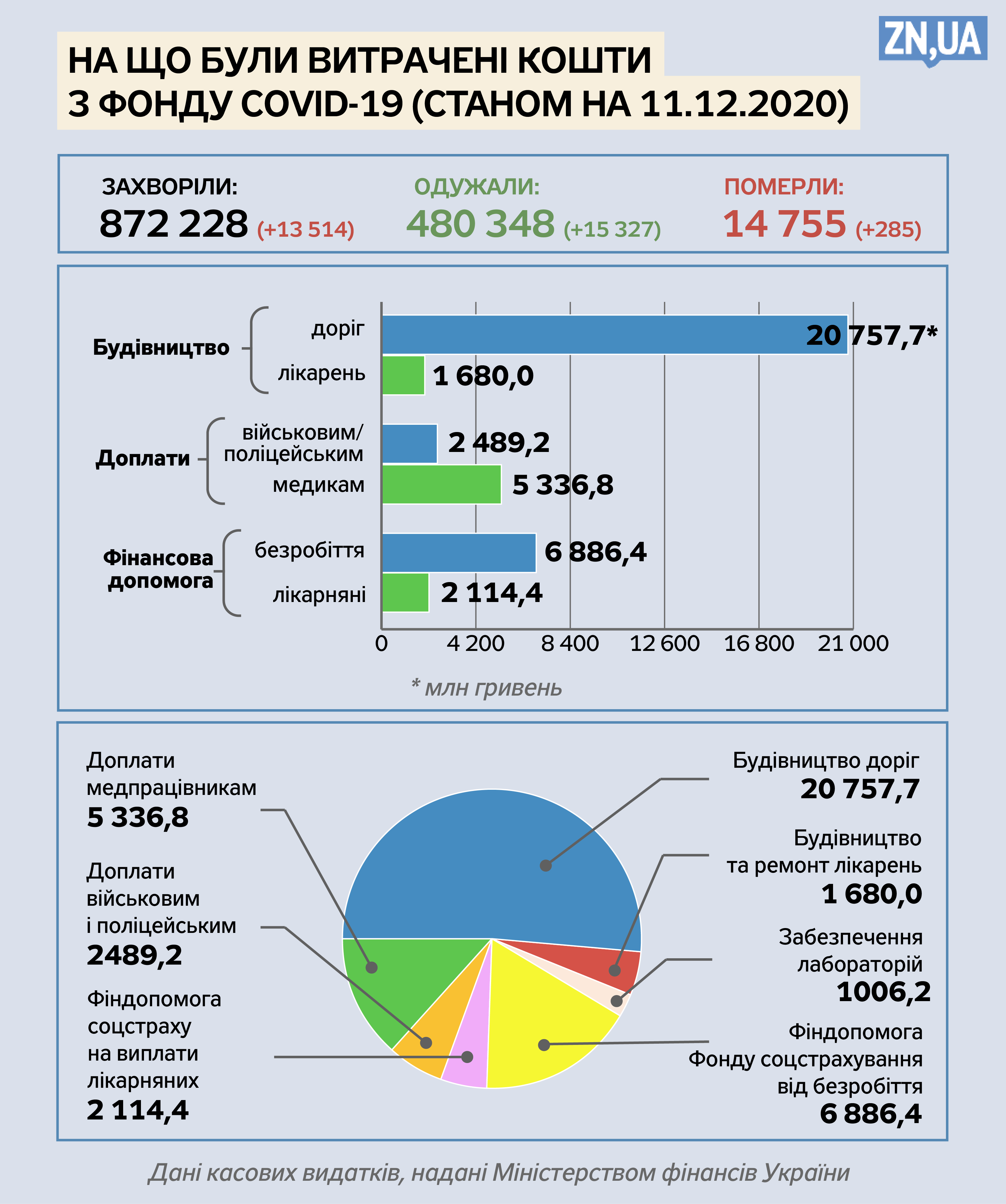 Протягом тижня з "ковідного фонду" на доплати медичним працівникам виділили 1 220,8 млн гривень. Касові видатки, виділені на лікарняні, збільшилися на 361,9 млн гривень. Про це свідчать дані про розподіл коштів з "коронавірусного" фонду, останнє оновлення якого опубліковано 7 грудня.