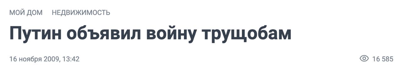 Наступного разу Путін (тоді колишній прем'єр-міністром) заявив про необхідність позбавити країну від нетрів, в яких живе багато росіян, у 2009 році на нараді з житлового будівництва (низка регіональних ЗМІ випустила цю новину під однаковим заголовком "Путін оголосив війну нетрям").