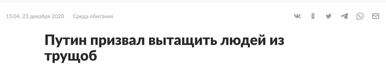 30 листопада Путін, який виступив у режимі відеоконференції на відкритті соціальних об'єктів у різних регіонах країни, знову закликав розселяти людей із нетрів.