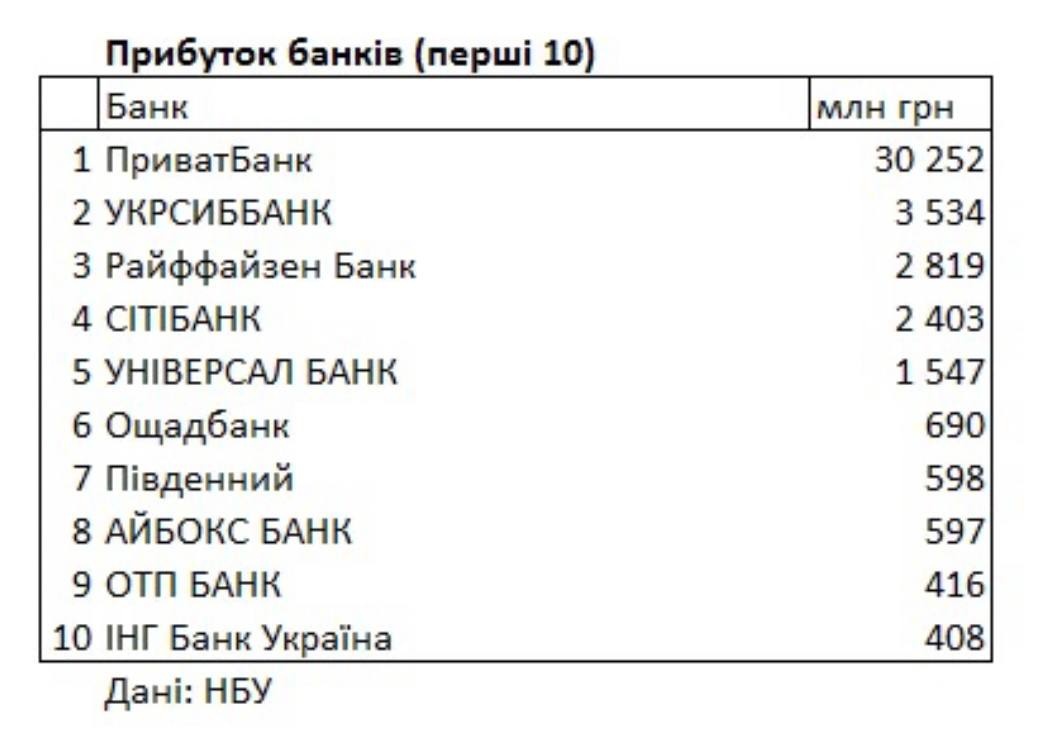 Рейтинг із прибутковості очолює державний Приватбанк, який заробив 30,252 млрд грн.