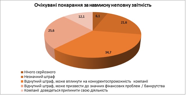 При цьому в КМІС відзначають, що підприємці побоюються бути спійманими за навмисно неправдиву звітність. Більшість бізнесменів вважають, що якщо їх "зловлять", то це спричинить серйозні штрафи, які вплинуть на подальшу діяльність компанії.