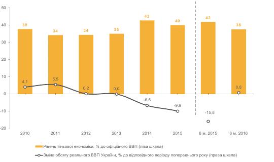 Рівень тіньової економіки в Україні у 2015 році знизився до 38% від ВВП порівняно з 40% за весь 2015 рік, повідомляє Міністерство економічного розвитку і торгівлі.